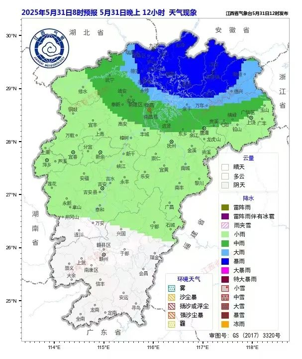 赣北雨停转阴天多云
