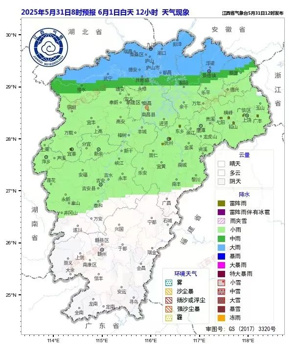 赣中、赣南多云