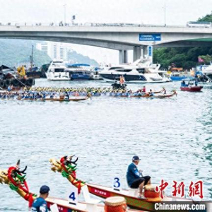 中新社香港5月31日电 (魏华都 黄岩妮)5月31日是端午节,香港多区举行龙舟竞渡。