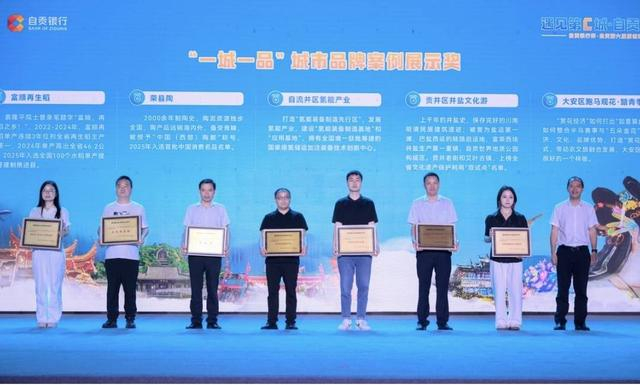 当晚,现场还颁发了一个重量级的奖项——“遇见第C城·自贡好City”自贡银行杯·自贡第六届原创短视频大赛“一城一品”城市品牌案例展示奖,高新区“高兴办”营商品牌、富顺再生稻、荣县陶、自流井区氢能产业、贡井区井盐文化游、大安区跑马观花·踏青季、沿滩区氟硅化工新材料等案例入选,颁奖嘉宾——中共自贡市委宣传部常务副部长赖远驰表示,这些案例展示代表着各区县的优势产业和备受市场青睐的品牌,也是自贡“融圈强极”“工业强市”“城乡融合”“文旅兴市”四大战略所取得的累累硕果。