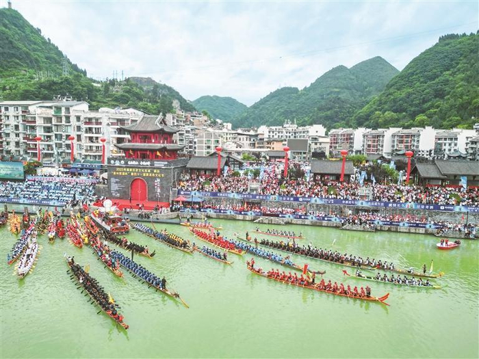 5月31日是中国传统节日端午节,2025国家历史文化名城·镇远“贵州青酒杯”第四十一届赛龙舟文化节在镇远古城开幕,来自省内外53支龙舟队共2000余名选手齐聚㵲阳河展开竞技。镇远赛龙舟历史悠久,2011年,镇远赛龙舟被列入国家级非物质文化遗产名录。