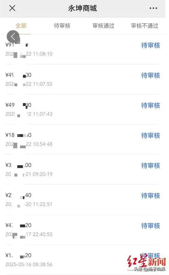李女士表示,5月20日,有朋友提醒她永坤黄金线上平台可能出现问题,她立即着手处理,但无论是退款还是提货申请,都处于“待审核”状态。