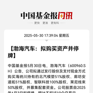 【导读】渤海汽车拟筹划重大资产重组,计划自6月3日开市起停牌