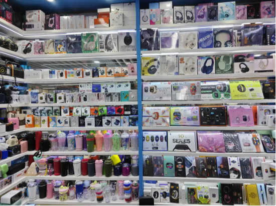 第一,扩充品类,不拘泥于过去。此前,他的桌子上放着一摞11年前就打好版的名片,上面写着经营的品类,比如数据线、音响、充电器等等。但现在,他的店里多了些新变化:曾经码满音响的货架多出来几行,放上了不锈钢水杯和吸管杯,时髦的多功能手电筒也渐渐摆了上去。