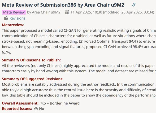 值得一提的是,这篇论文在Meta Review阶段,和的分数一样,都是4.5(Borderline Award)。