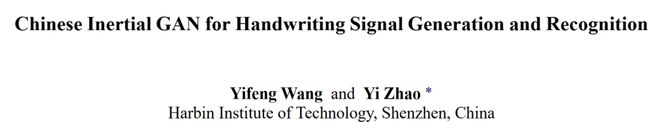 这篇题为「Chinese Inertial GAN for Handwriting Signal Generation and Recognition」的论文,作者是来自哈工大的王一峰博士和赵毅教授。