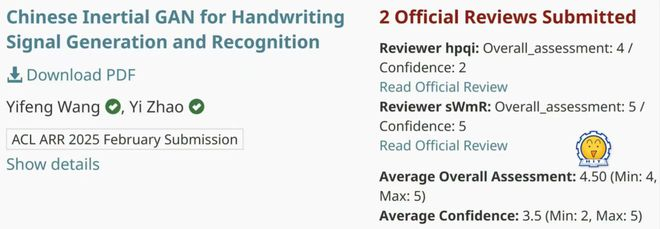 根据ACL组委官方发布的评分分布,其Average Overall Assessment为目前最高的4.5分。