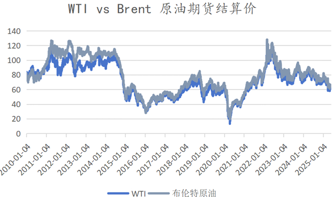 图三:WTI原油现货价和布伦特原油现货价