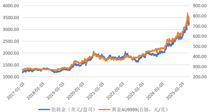 图二:黄金Au9999和伦敦金价格