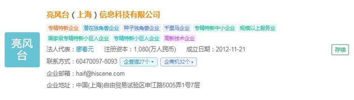 亮风台(上海)信息科技有限公司成立于2012年11月,注册资金为1,080(万人民币),法人代表是廖春元,是中国首批专注于增强现实(AR)技术的高科技企业。