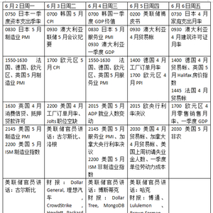 本周看点颇多,美国5月就业数据将成为焦点,因为投资者希望看到关税对就业的影响程度以及这对利率可能意味着什么,美联储将公布经济状况褐皮书,同时还有美国5月制造业和服务业ISM数据。欧洲央行的决定也将受到密切关注,市场普遍预计将降息25个基点, 由于高通胀压力,加拿大央行或将关键政策利率保持在2.75%不变。