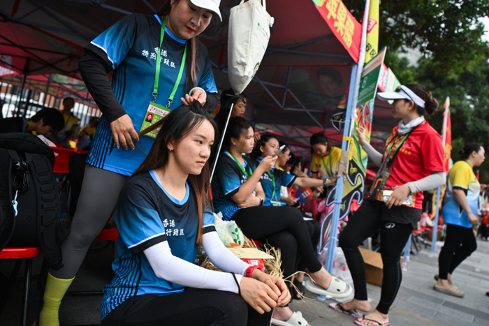 在选手集结区,男子国际组的中国香港特别行政区龙舟联会龙舟队雄心勃勃,领队黄桂根表示,这是该龙舟队第三年征战广州国际龙舟邀请赛,“第一年我们是亚军,去年就拿了冠军,今年我是来卫冕的。”据悉,该队扒龙舟9年,队伍中最大的50多岁,最小的不到19岁,是在广州读书的大学生,“我们扒龙舟的不认老,跟年轻人可以一起玩,我们都是龙舟爱好者,因为龙舟走到一起。”在上午的预赛中,该队在600米直道赛预赛中,以2分25秒255取得小组第一,晋级半决赛。
