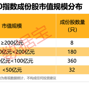 据证券时报·数据宝统计,从上证580指数成份股的市值分布来看,成份股市值规模主要集中在50亿元—200亿元之间,占比超93%。