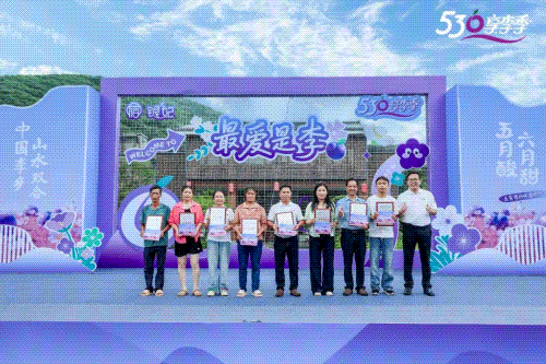 5月30日,钱排镇主会场融合区广场以及山水双合景区俨然成了欢乐的海洋。钱排镇精心策划的系列主题活动,吸引了游客沉浸式体验“银妃李”主题盛宴。参与活动的游客化身评委,票选“银妃李”“十大果王”,活动为获得果王争霸赛“十大果王”称号的9名种植户,以及获得“十大果王金奖”的种植户进行颁奖。活动现场,还为2025年“银妃李十大优良母本树”评选出的十株优良母本树颁发一二三等奖奖牌。