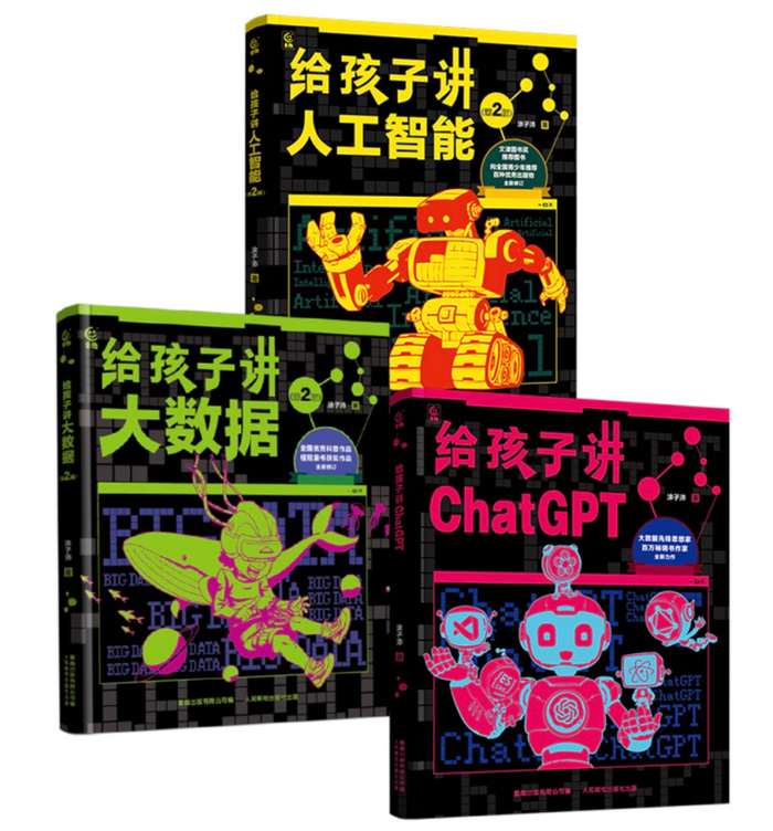 数字化时代,人工智能正在重塑世界。本三部曲包括《给孩子讲人工智能》《给孩子讲大数据》的修订版,及全新推出的《给孩子讲Chat GPT》。这套书介绍了人工智能领域的火爆话题、重要历史、前沿应用和实用预警;追溯了大数据的发展脉络,充分体现大数据在信息时代的度量衡作用,帮助孩子们练就数据思维。此外还展示了以Chat GPT为代表的大语言模型的发展历程与强大功能,引导孩子们洞悉大模型热潮之下的科技前沿动态。