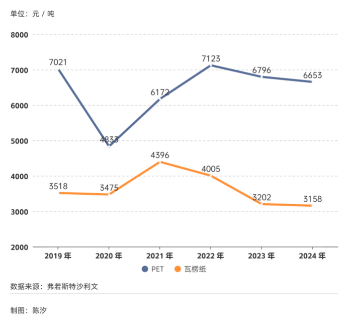 图2:PET和瓦楞纸的市场价格