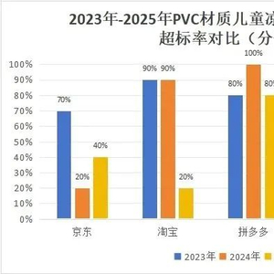 “25双超标凉鞋平均超标倍数为365倍,最高超标倍数为509倍,涉及的超标物质有邻苯二甲酸二丁酯(DBP)、邻苯二甲酸二(2-乙基己基)酯(DEHP)、邻苯二甲酸二异壬酯(DINP)。”马晓辉表示,“与2024年相比,整体超标率下降了32个百分点。各平台超标情况有所不同,淘宝、抖音商城和快手商城的超标率较前两年显著下降。”