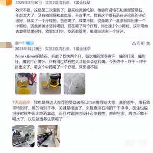 “客服让我每天泡4包,上午2包,下午2包,没承想按照‘疗程’喝了几个月后,我的胆囊结石反而变得更严重了。”乔先生告诉央广网记者,去年8月刚发现患上胆囊多发结石时,觉得不严重,就想着找找看有没有无痛去结石的方法。乔先生说,去年9月初,他在某电商平台无意间看到膳旋律旗舰店所售的源仁堂金钱草清石茶是用“非遗秘方去结石”,双肾结石、胆囊结石、尿道结石、多发结石都能解决,且这款茶饮在店铺中处于销量第1名位置,用户评价更是让人心动。记者看到,“肾结石已经完全没有了”“效果比打针、吃药都管用”“终于排出来了”“排得特别干净,关键是根治了”……用户评价区的确好评如潮。动心了的乔先生最终消费118元下单购买了4盒清石茶和2罐金钱草。