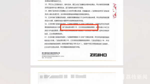为了及时止损,今年3月,王先生只能把店铺关闭了。按照双方的合同约定,门店运营未满一年,王先生需要承担全部建店费用,其中包括厂家13万多元的装修款。王先生说:“(厂家)要我们赔偿装修款,我说这个也没问题,我们按照协议去做。”