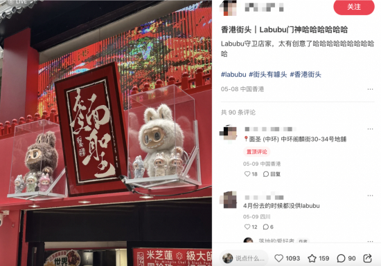 在香港街边小店,Labubu已经作为门店守护神般被店家摆放在显眼位置。