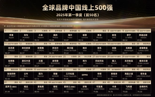 值得一提的是,就在618前,北京大学国家发展研究院等权威机构联合发布“中国线上消费品牌指数”(CBI)和“全球品牌中国线上500强榜单”(下文简称CBI500榜单)2025年1季度版。