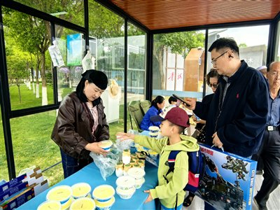 此外,来自大通县的手工老酸奶制作技艺展馆内每天市民游客络绎不绝,多种口味的酸奶满足了大家不同的购买需求。