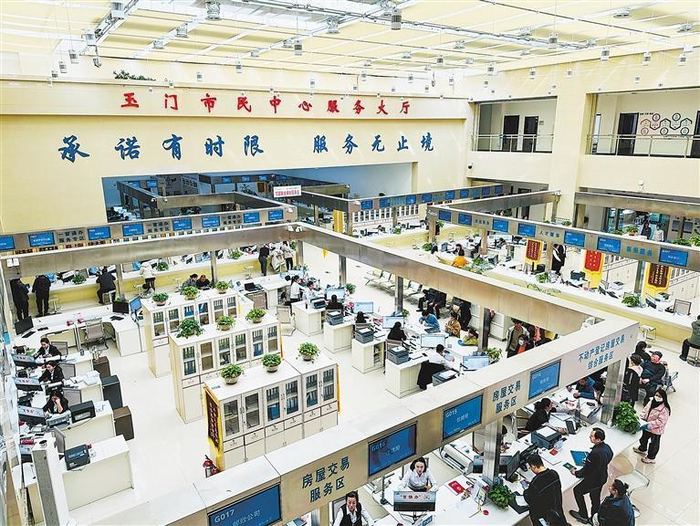 玉门市民中心服务大厅。
