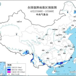 中央气象台6月2日6时继续发布暴雨蓝色预警:预计6月2日8时至3日8时,福建东部和南部沿海、广东中南部、广西南部、云南西北部和东部、西藏东南部以及黑龙江西部等地部分地区有大到暴雨,其中,广东中部等地局地有大暴雨(100~140毫米)。上述部分地区伴有短时强降水(最大小时降雨量20~40毫米,局地可超过50毫米),局地有雷暴大风或冰雹等强对流天气。