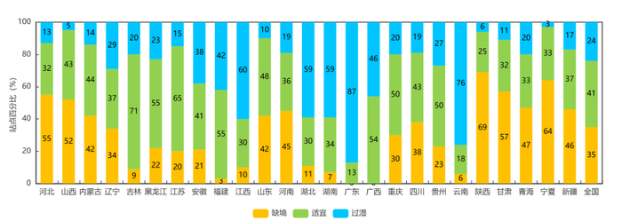 附图2 6月1日分省20厘米土壤墒情统计(站点百分比)