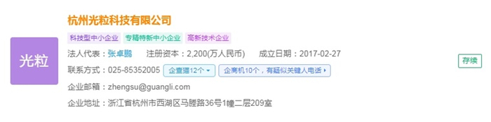 企查猫资料显示 ,杭州光粒科技有限公司(简称:光粒科技)成立于2017年2月,法人代表是张卓鹏,注册资金为2,200(万人民币),是一家专注于增强现实(AR)技术的高科技企业。公司致力于通过光场技术解决三维近眼显示的晕眩问题,特别是视觉辐辏调节冲突,为消费者提供可长时间佩戴、大视场角的AR眼镜产品。2019年,在CES Asia上发布首款太阳镜形态的光场眼镜LIGHTIN 。