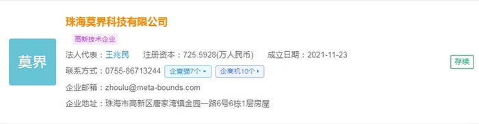 珠海莫界科技有限公司成立于2021年11月,法人代表是王兆民,注册资金为725.5928(万人民币),是一家致力于联通虚拟与现实、让用户享受个性化生活的高科技公司。莫界科技研发团队博士及研究生学历占比近80%,来自国内外著名高校。2025年3月,莫界科技入选“广东百企博创平台培育计划”首批名单,是珠海市唯一入选企业。