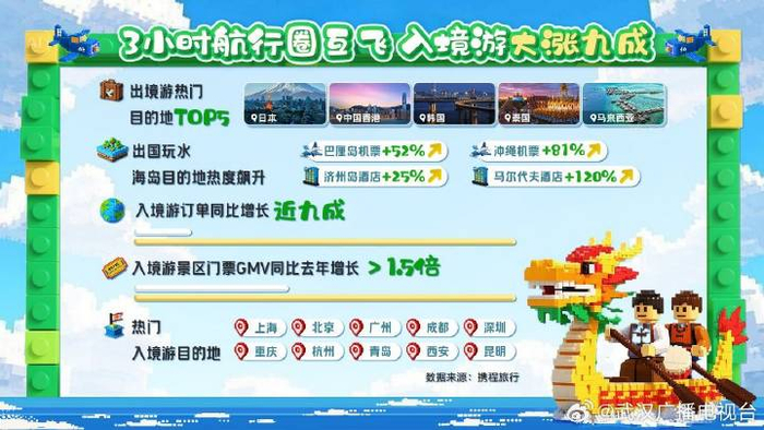 截止目前,武汉主要客源城市是:上海、北京、长沙、深圳、广州等地,热门景区有晴川阁、黄鹤楼、湖北省博物馆、武汉九峰森林动物园、武汉欢乐谷等;此外,武汉入境游订单量同比去年增长45%。