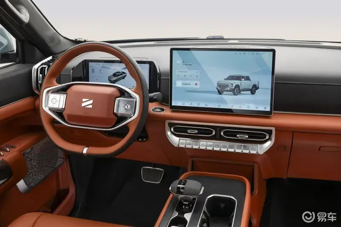 内饰方面,郑州日产Z9 GE PHEV整体设计基本与燃油版车型保持一致,配备了悬浮液晶仪表以及悬浮中控液晶屏,大量物理按键的出现为新车保留了不少皮卡的野性。
