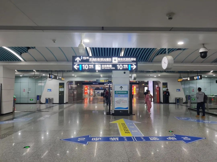 乘坐飞机抵达双流国际机场后,可通过地铁指示标识快速换乘地铁;