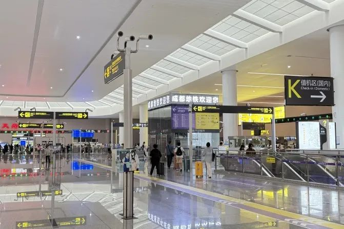 乘坐飞机抵达天府国际机场后,按照机场指示牌指引,抵达位于地面一层的换乘大厅前往乘坐地铁;
