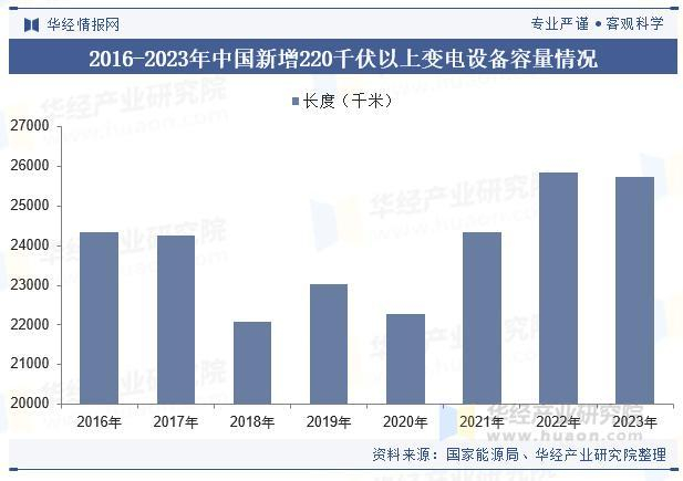 根据国家能源局网站公布的各年度全国电力工业统计数据,除2012、2013年外,我国年新增220千伏及以上变电设备容量均保持在2万千伏安以上,2023年新增220千伏及以上变电设备容量(交流)2.57亿千伏安,新增直流换流容量1600万千瓦。