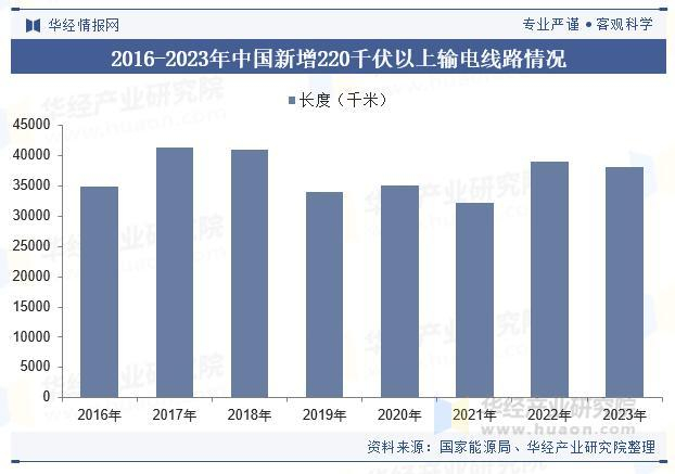 为解决我国电力建设长期存在的能源中心与用电中心不匹配,以及电力发展“重发电轻供电”的结构性缺陷等问题,进入“十一五后”国家电力开始着重于电网建设,国家发改委、能源局发布的《电力发展“十三五”规划》指出“要合理布局能源富集地区外送,建设特高压输电和常规输电技术的‘西电东送’输电通道,自2011年起,我国年新增220千伏及以上输电线路长度保持在3万公里以上,2023年,全国新增220千伏及以上输电线路长度来到了3.81万千米。