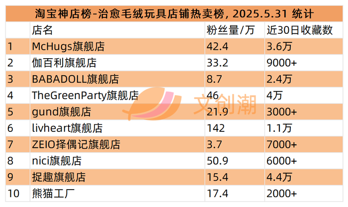 治愈毛绒玩具店铺热卖榜,前五名分别是: