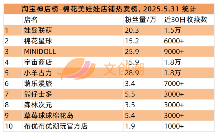 娃岛联萌、棉花星球、MINIDOLL、宇宙商店、小羊古力。