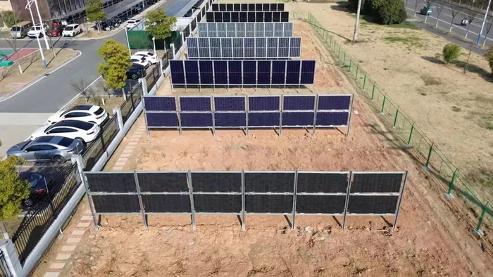在华晟新能源宣城总部附近,建有一座特殊的光伏组件实证电站。不同于其他企业的实证电站,华晟新能源电站的这些实证电站所用的光伏板均为垂直安装,而非倾角安装。