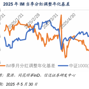 当前基差处于低位,小盘贴水持续较深:截至2025年5月30日,IC、IF、IH及IM当季合约分红处理过的年化基差分别为-8.85%、-1.99%、1.07%、 -13.94%,分别处于2021年7月以来8.00%、13.70%、24.90%、2.70%分位。