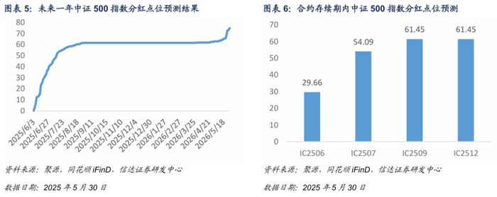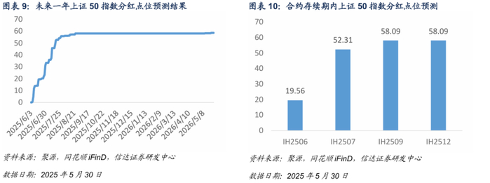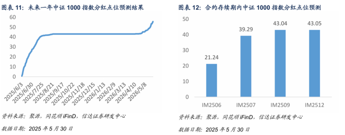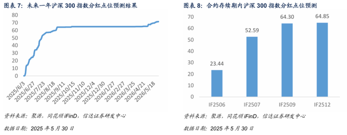 基于信达金工衍生品研究报告系列二《股指期货分红点位预测》中的方法对股指期货合约存续期内分红进行预测。