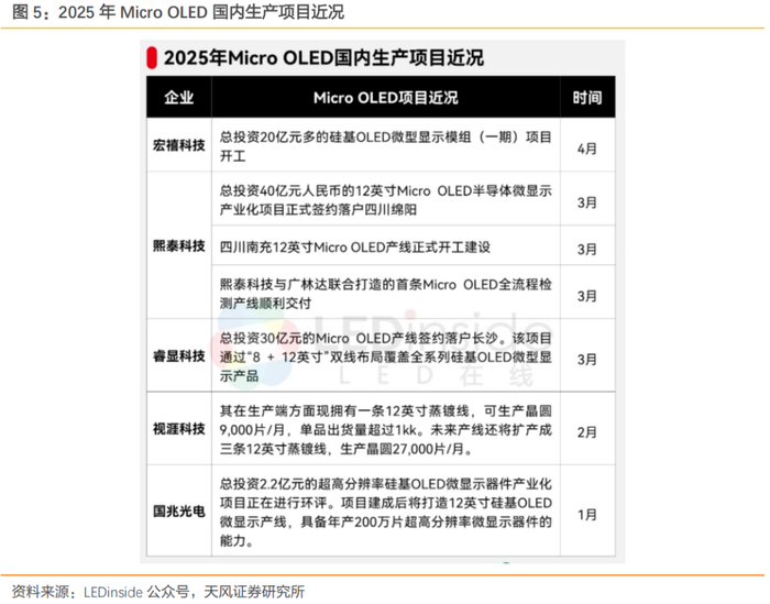 Micro OLED技术在2025年迎来进一步的发展,并带动上游核心器件项目的投资也进一步加大。随着未来终端市场对于Micro OLED认可度与需求度的持续上升,Micro OLED产业链也将进一步扩大发展,往更成熟的阶段前进。奕瑞科技此次大手笔的投入建设硅基OLED(Micro OLED)微显示背板项目,不仅仅是因为下游视涯科技所带来的稳定需求,更是看好近年多个Micro OLED微显示项目涌现所带来的产能扩展,将推动未来Micro OLED微显示背板需求的持续上升。另有多个国产企业在今年推动Micro OLED项目的落地与建设,进一步扩充国产Micro OLED的产能,其中包括宏禧科技、熙泰科技、睿显科技等。从终端需求来看,对于Micro OLED微显示屏的需求也在不断提升。在中短期时间内,Micro OLED仍在AR眼镜应用占有重要一席之地。除此之外,Micro OLED应用范畴还包括安防监控、数码相机取景器、军事瞄准设备、医疗设备、工业检测、车载显示器等领域,因此Micro OLED未来应用发展仍值得期待。