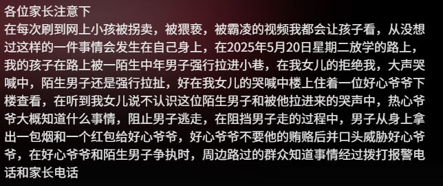 湖南一6岁女童被陌生男子拖进小巷!孩子哭得撕心裂肺,家长:男子已拘留