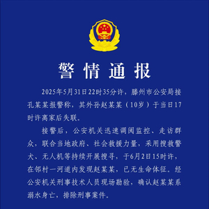 滕州警方通报:失联10岁男孩确认遇难