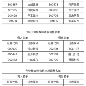 深交所调整深证成指、创业板指、深证100等指数样本股!调入、调出个股名单公布→