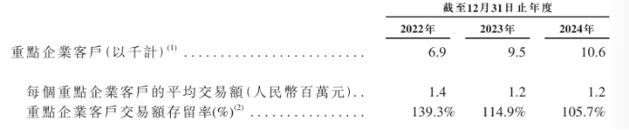 京东工业表示,交易平台交易额于2022年至2023年有所增长,主要是由成功吸引新客户及推动现有客户的额外支出所驱动。交易平台交易额于2024年有所下降,主要是因为重点企业客户越来越倾向于直接向公司采购商品,而不是通过交易平台进行采购。于往绩记录期间,公司通过提高现有重点企业客户的整体粘性及持续吸引新重点企业客户来战略性聚焦重点企业客户群的扩展,使得重点企业客户数量大幅增加。由于往绩记录期间吸引新重点企业客户并扩大重点企业客户群,每个重点企业客户的平均交易额因而出现波动。