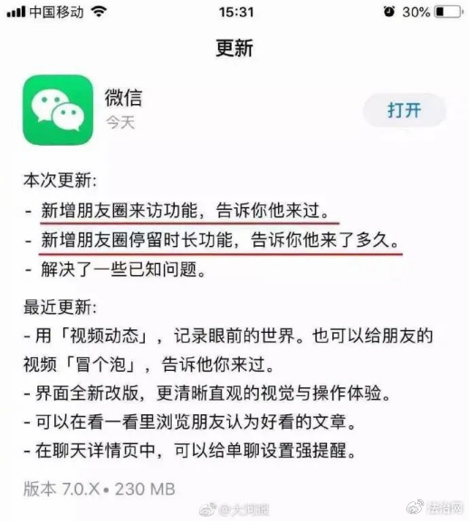 微信朋友圈能看访客记录了?