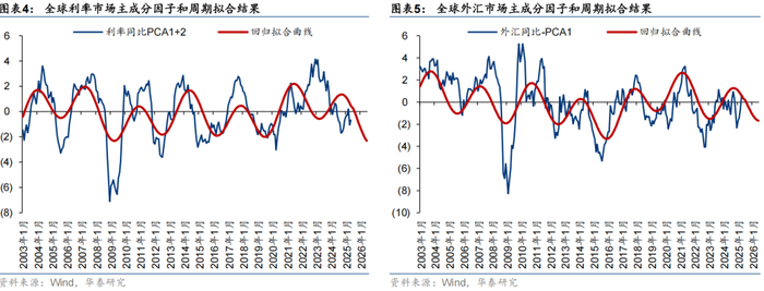 截至2025年5月28日,全球基钦周期或已经进入下行期。从各大类资产主成分因子的走势来看:1)全球股票同比序列自去年4季度开启下行,价格序列在今年1季度开始振荡下行,价格序列大约落后同比序列4-5个月,符合历史规律。未来全球股票资产或许会进入高波动状态,获取收益难度明显加大。2)全球商品的走势与股票相似,但商品本轮周期略晚于股票,目前也出现拐点,由于市场因子已经出现下行,我们认为全球经济相对偏弱,因此多数商品价格可能会继续维持弱势震荡。3)全球外汇(美元空头方向)出现一定程度的反复,去年4季度出现明显下行,今年1季度又再次出现上行,外汇市场可能会更容易受到政策影响,外汇周期可能朝着强美元的方向运行,但过程可能较为曲折。4)全球利率走势与周期模型拟合结果在2022年和2023年出现了一定程度的偏离,近期两者的走势逐渐同步,随着基钦周期下行,利率偏弱可能是大概率事件,但不同国家之间可能会出现差别,尤其美国面临财政和通胀的约束,利率下行或许并不顺畅。(相关因子的构造方法参见前期报告《全球资产是否存在统一的市场因子》(2023-12-01))。