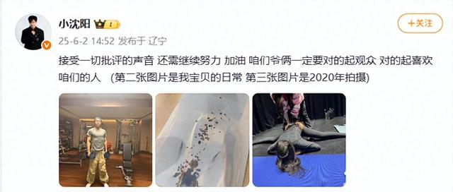 6月2日下午,艺人小沈阳发文回应女儿登台唱跳遭吐槽:接受一切批评的声音,还需继续努力,加油,咱们爷俩一定要对得起观众,对得起喜欢咱们的人 。